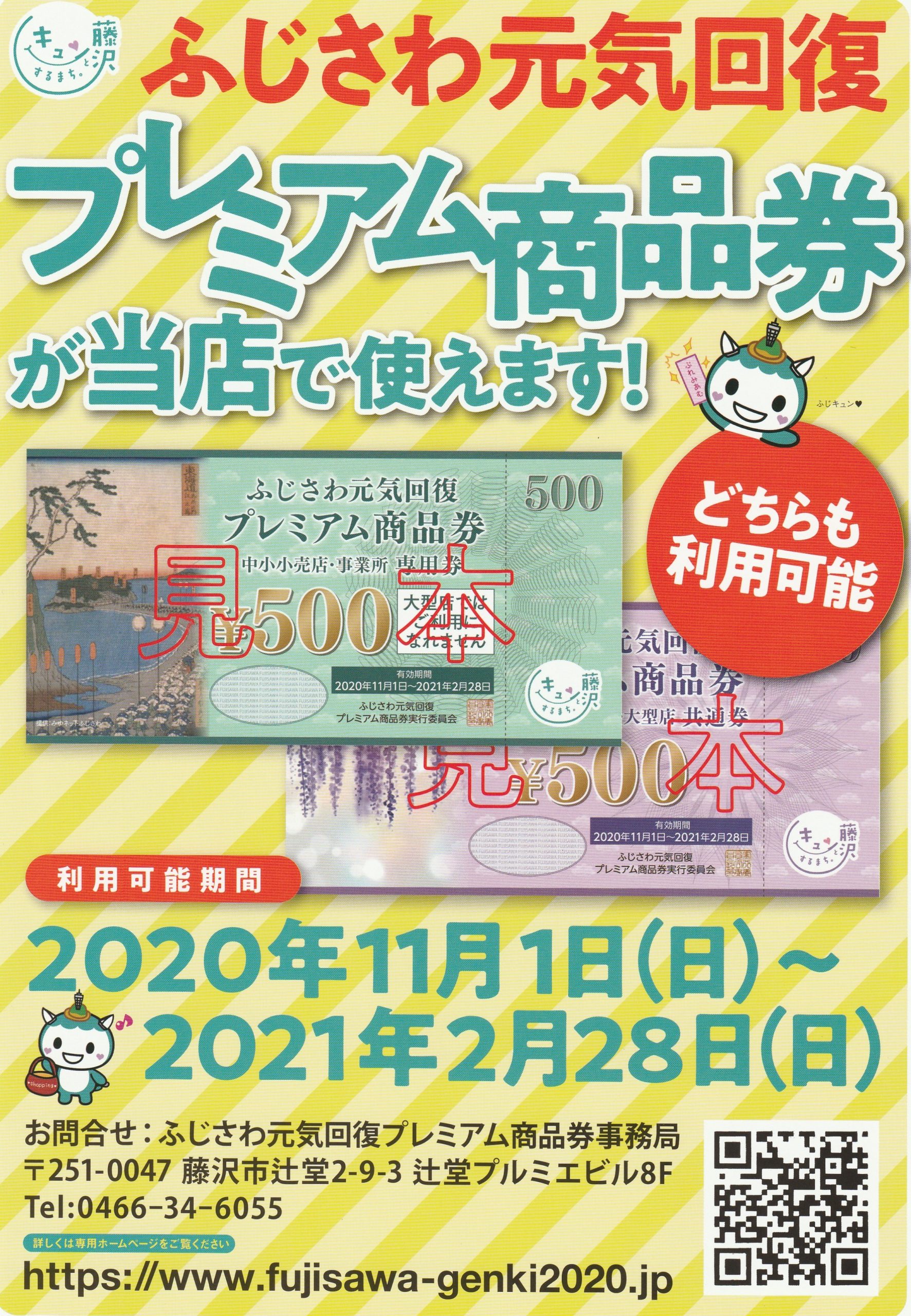 「ふじさわ元気回復プレミアム商品券」が使用可能となります。